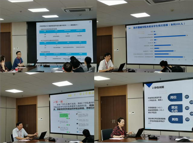 各二级学院书记分别汇报了学院毕业生的具体进展,统计已就业、本地与外地待就业、升学、考公务员、自主创业等具体数据;排摸学生就业意向,对就业懈怠、就业困难、就业方向单一的学生进行梳理;对每类、每位同学情况做到精准分析与指导。同时,各学院介绍了各自就业推进举措,通过院领导结对包干、困难同学帮扶、主动联系用人单位、保障和激励等举措推进就业工作。黄校长肯定了各学院在疫情期间推出的就业举措和努力,希望各学院彼此分享经验。同时他表示,校领导将尽力为学院解决推进就业工作中遇到的困难,院校共同努力。