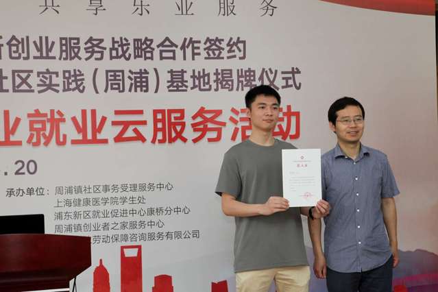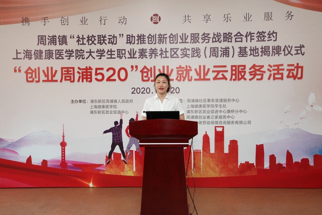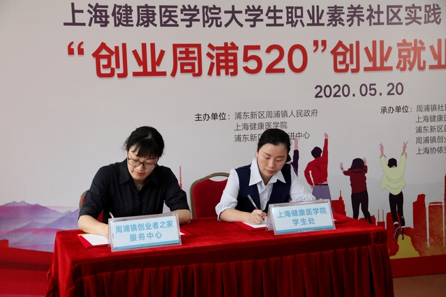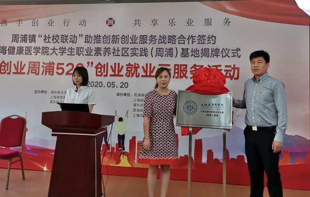5月20日上午,由浦东新区周浦镇人民政府、浦东新区就业促进中心、上海健康医学院联合主办的“社校联动”助推创新创业服务战略合作签约暨上海健康医学院大学生职业素养社区实践(周浦)基地揭牌仪式、“创业周浦520”创业就业云服务活动在周浦镇社区事务受理服务中心举行。