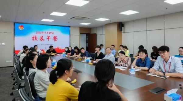 于2020年9月29日在北苑1号楼902会议室,中午11点40分,我校召开了校长午餐。学校为进一步改善学生生活,为学生们营造良好的生活环境,邀请新生和老生相聚在一起,同学们积极的发言提出问题,校方领导在现场及时给出回复,并允诺会在之后一一解决同学们所面临的问题,努力为大家创建美好的校园生活。